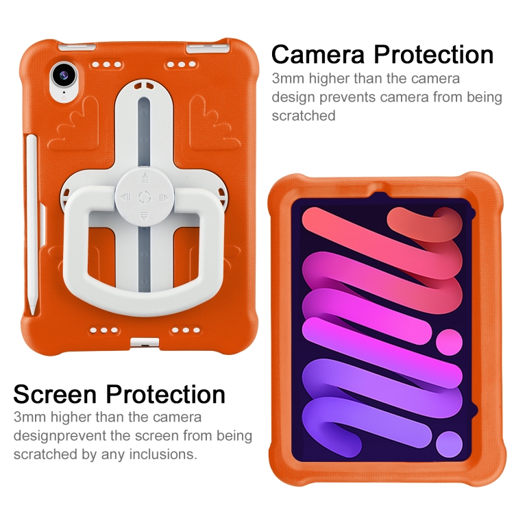 Funda para Tableta iPad Mini 6 2021 Shield 360 Rotation Handle Eva a Prueba de Golpes (Naranja Beige)
