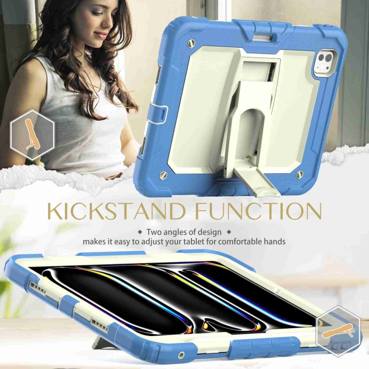 Funda de Silicona Hídrica para iPad Pro 11 (2024) con Correa y Soporte (Beige, Cian y Azul)