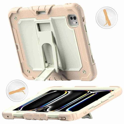 Funda de Silicona Hídrica para iPad Pro 11 (2024) con Correa y Soporte (Beige y Oro Rosa)