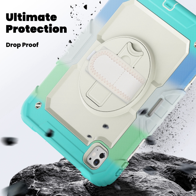 Funda híbrida de silicona para iPad Pro 11 (2024) con correa para el hombro (Azul Claro Camuflaje)