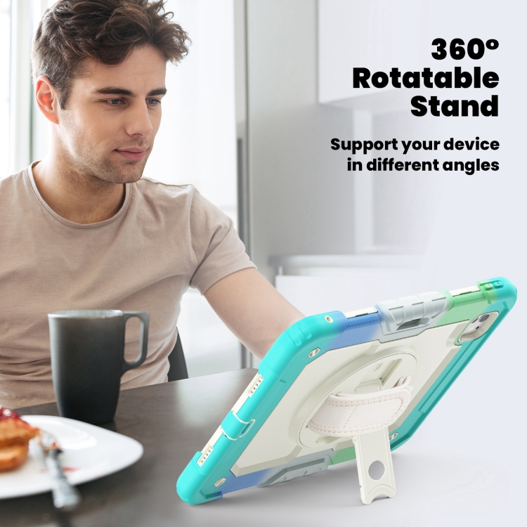 3. Soporte giratorio de 360 ​​grados: Soporte giratorio de 360 ​​grados con múltiples ángulos para disfrutar de la máxima comodidad al escribir y ver películas.