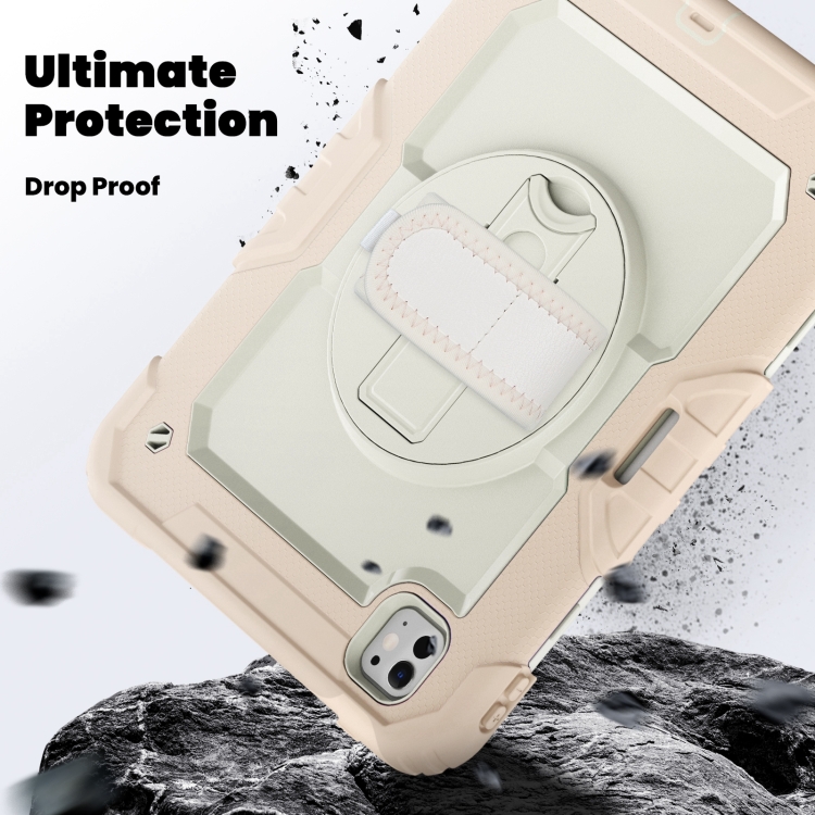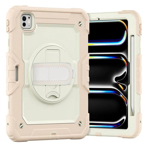 Funda híbrida de silicona para iPad Pro 11 (2024) con correa para el hombro (Beige y Oro Rosa)
