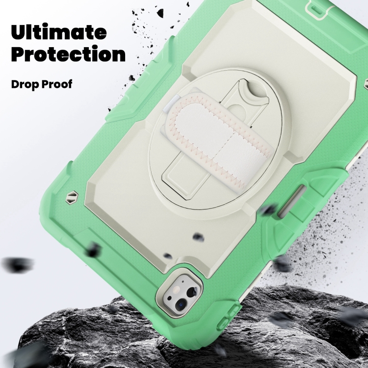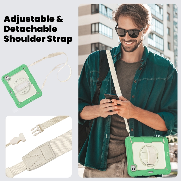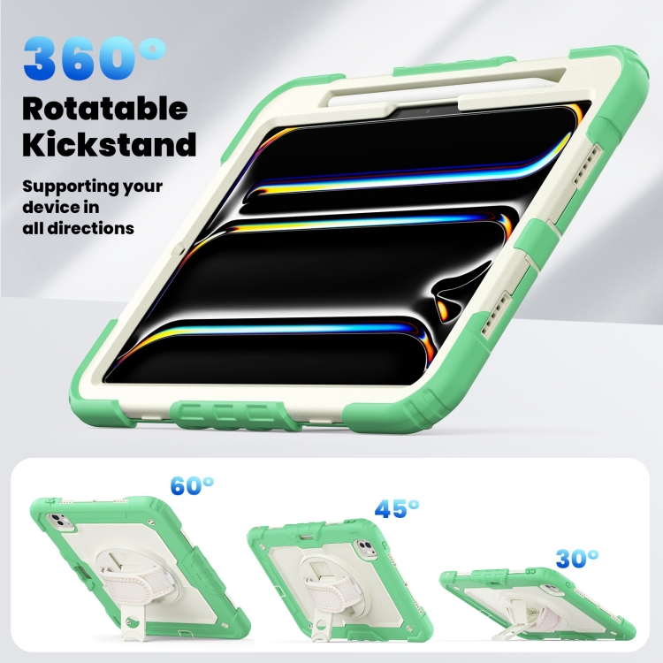 Funda híbrida de silicona para iPad Pro 11 (2024) con correa para el hombro (Beige y Verde Claro)