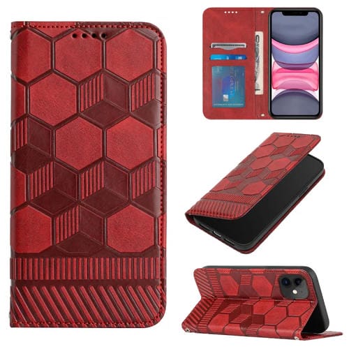 Funda de Teléfono para iPhone 11 con Tapa de Cuero Magnético y Textura de Fútbol (Rojo)