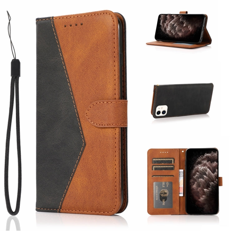 Funda de Teléfono iPhone 11 Cuero Costuras Dos Colores (Marrón Negro)