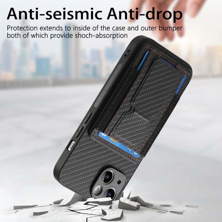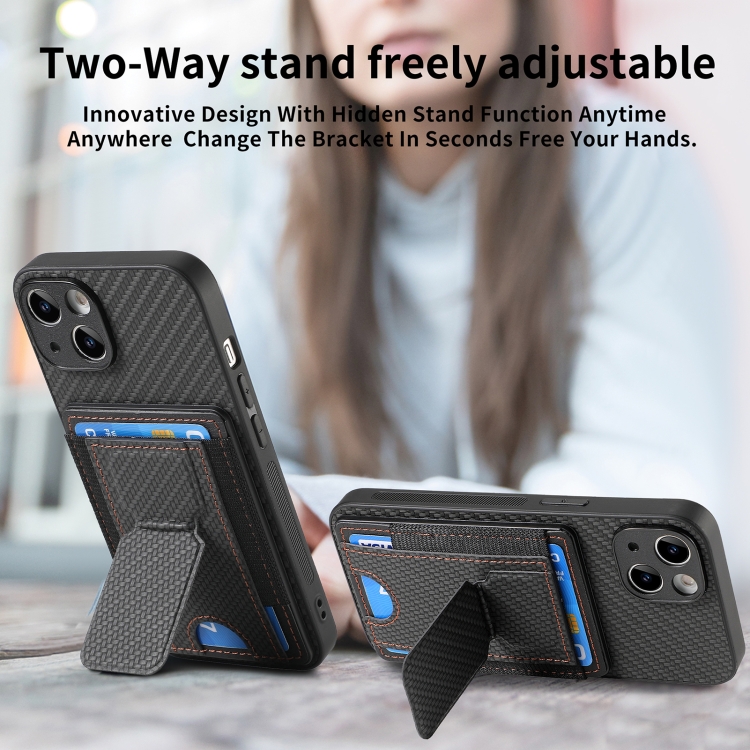 Funda para teléfono iPhone 11 con bolsa para tarjeta elástica y soporte plegable de fibra de carbono (Negro)