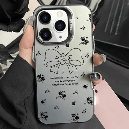 Funda híbrida para iPhone 11 Pro TPU para PC con pintura plateada (Lazo floral negro)