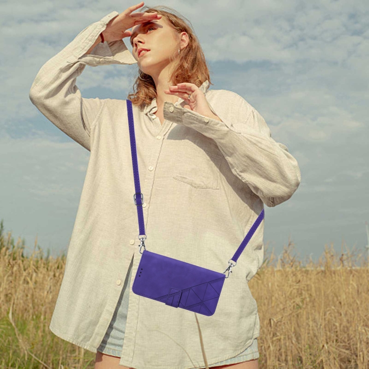 Funda para iPhone 11 Pro Crossbody 3D de Cuero con Tapa en Relieve (Púrpura)