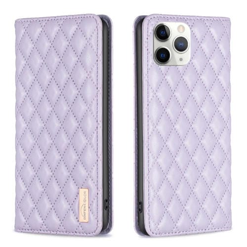 Funda para iPhone 11 Pro Diamond Lattice con Tapa de Cuero Magnético (Púrpura)