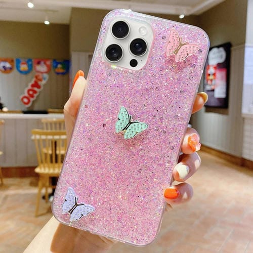 Pour iPhone 11 Pro Étui de téléphone en TPU époxy à paillettes étoilées et strass (rose)