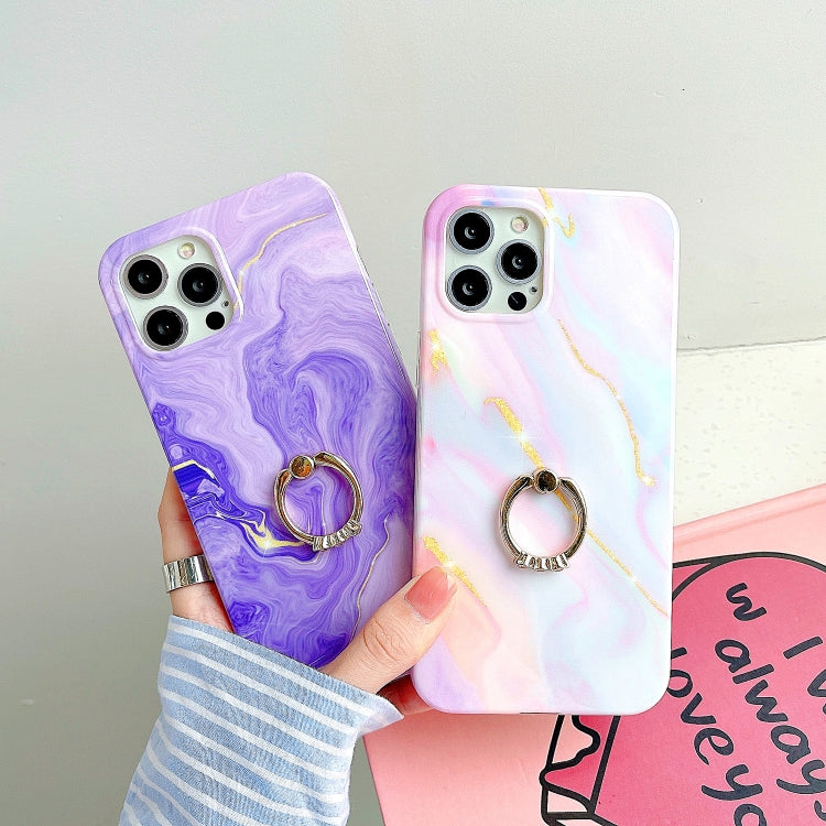 Funda para iPhone 11 Pro Max Fleeled TPU Mármol con Soporte de Anillo Metálico (Rosa)