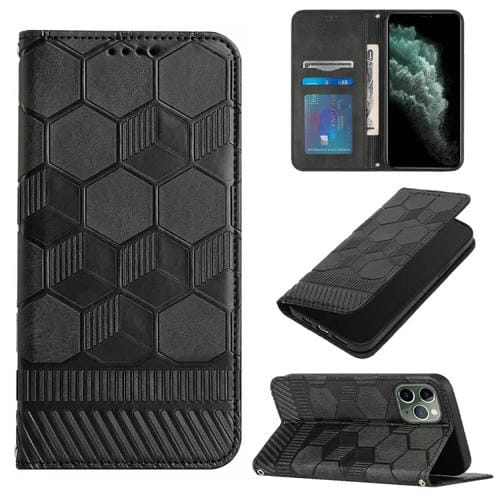 Funda de Teléfono iPhone 11 Pro Max con Tapa de Cuero Magnético Textura de Fútbol (Negro)