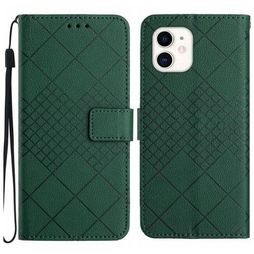 Funda de Cuero para iPhone 12/12 Pro con Textura de Rejilla Rómbica (Verde)