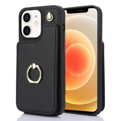 Funda para Teléfono Ym005 Skin Feel Card Bag para iPhone 12/12 Pro con Cordón Largo (Negro)