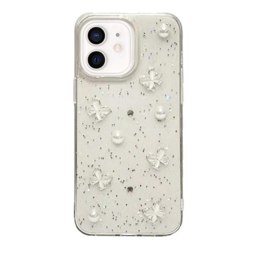 Estuche para Teléfono TPU iPhone 12 Mariposa Perla Purpurina