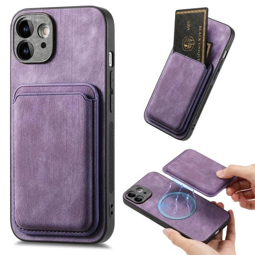 Funda magnética para teléfono iPhone 12 con bolsa de tarjeta de cuero retro (Púrpura)