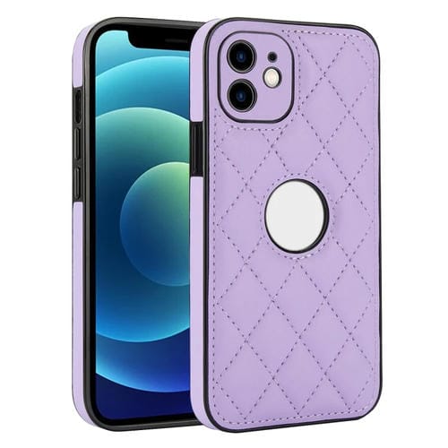 Pour iPhone 12 Étui de téléphone en cuir rhombique (Violet)