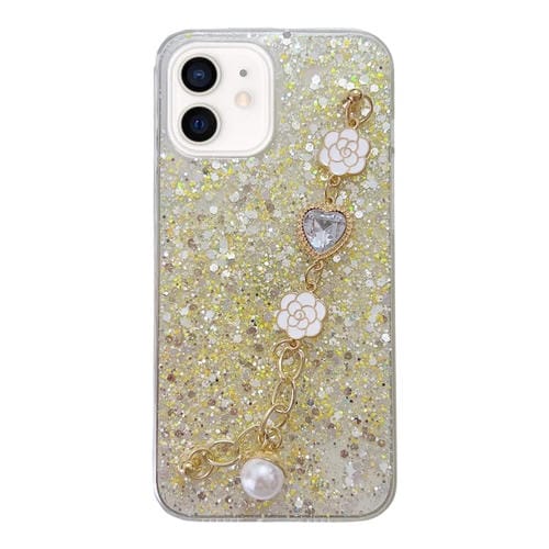 Funda para Teléfono TPU Epoxi iPhone 12 con Cadena de Gemas y Lentejuelas Estrelladas (Amarillo)