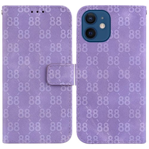 Estuche para teléfono iPhone 12 Mini Cuero en relieve Doble Forma de 8 (Púrpura)