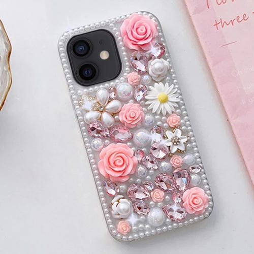 Estuche para Teléfono iPhone 12 Mini con Diamante para PC con Juego de Mano (Rosa)
