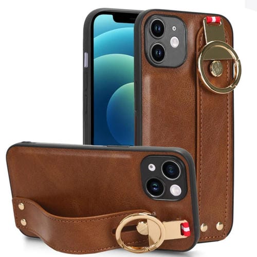 Funda Trasera Muñequera para iPhone 12 de Cuero (Marrón)