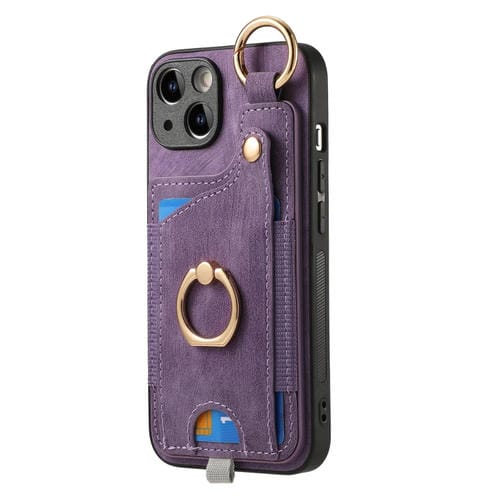 Estuche para teléfono iPhone 12 Pro con bolsa para tarjeta anillo y lazo (Púrpura)