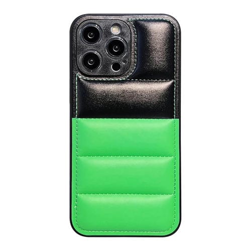 Funda para Teléfono iPhone 12 Pro Chaqueta de Plumón Bloques de Color (Negro Verde)