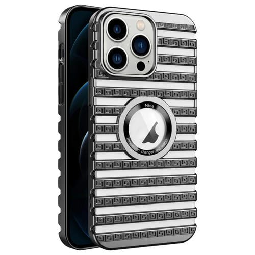 Caja de teléfono hueca galvanizada para iPhone 12 Pro Max con escalera de enfriamiento (Negro)