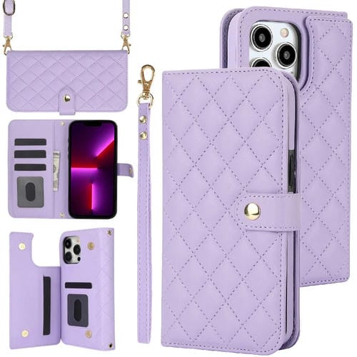 Estuche para Teléfono iPhone 12 Pro Max Crossbody Cuero Rómbico Multifunción (Púrpura)