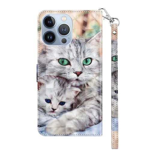Funda de Teléfono iPhone 12 Pro Max Cuero Pintado en 3D Dos Gatos Amorosos