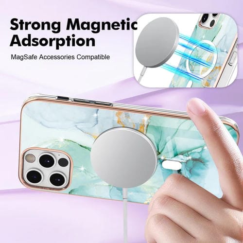 Funda para iPhone 12 Pro Max Marble Pattern Dual-Side Imd Magsafe TPU (Verde)