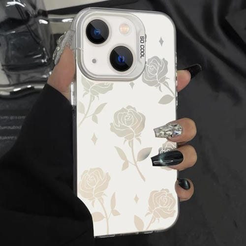 Pour iPhone 13 Silver Paint PC TPU Hybrid Phone Case (Creux Rose Blanc)