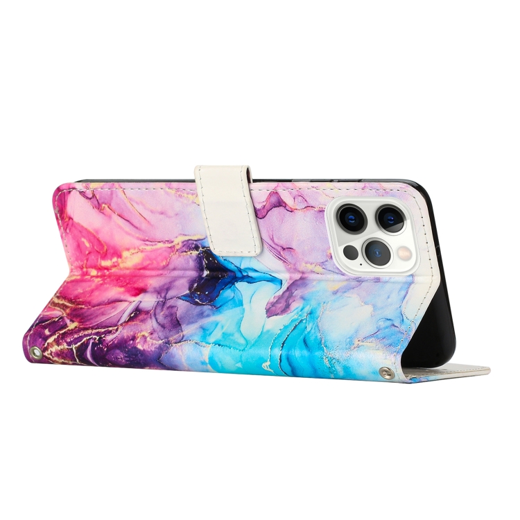 Funda de Teléfono Crossbody Apple iPhone 13 Pro Cuero Patrón Mármol (Rosa Púrpura)