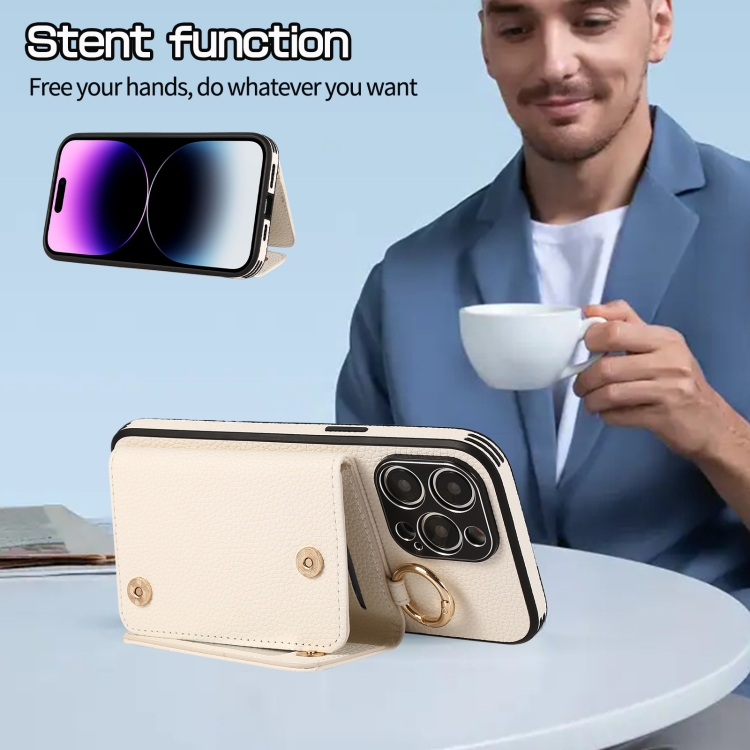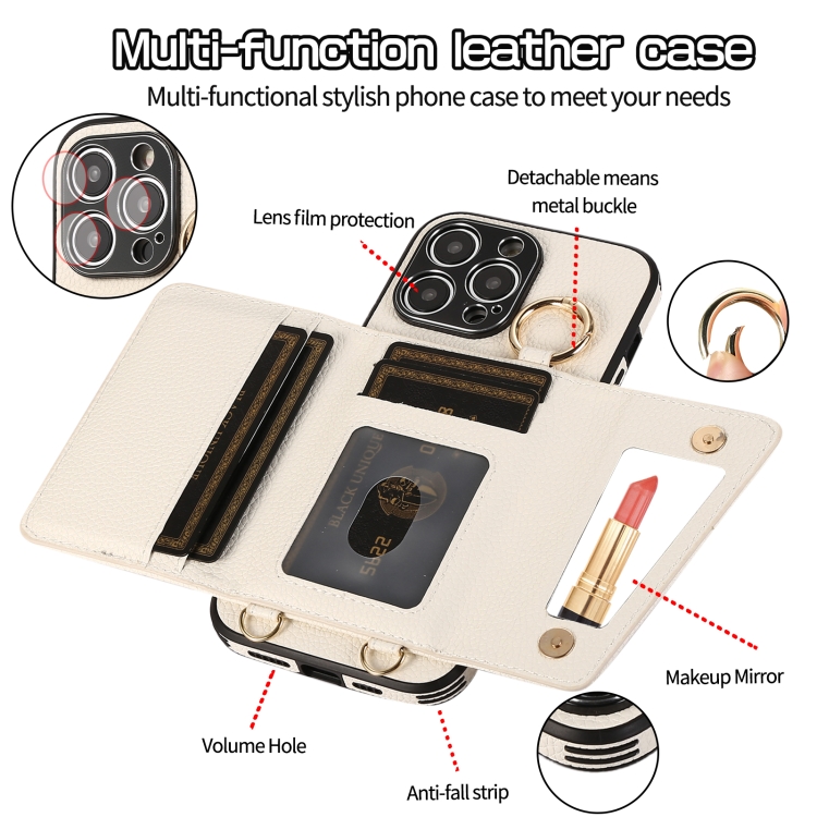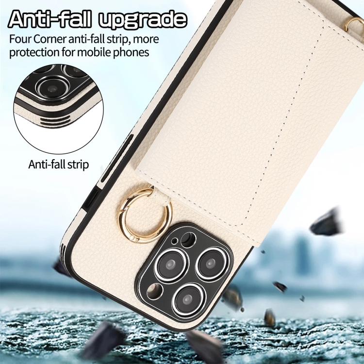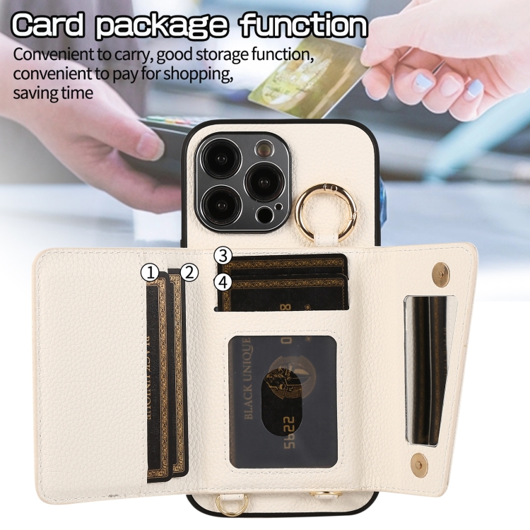 Funda para Teléfono iPhone 13 Pro Cubierta Trasera de Cuero con Anillo Cruzado (Blanco)