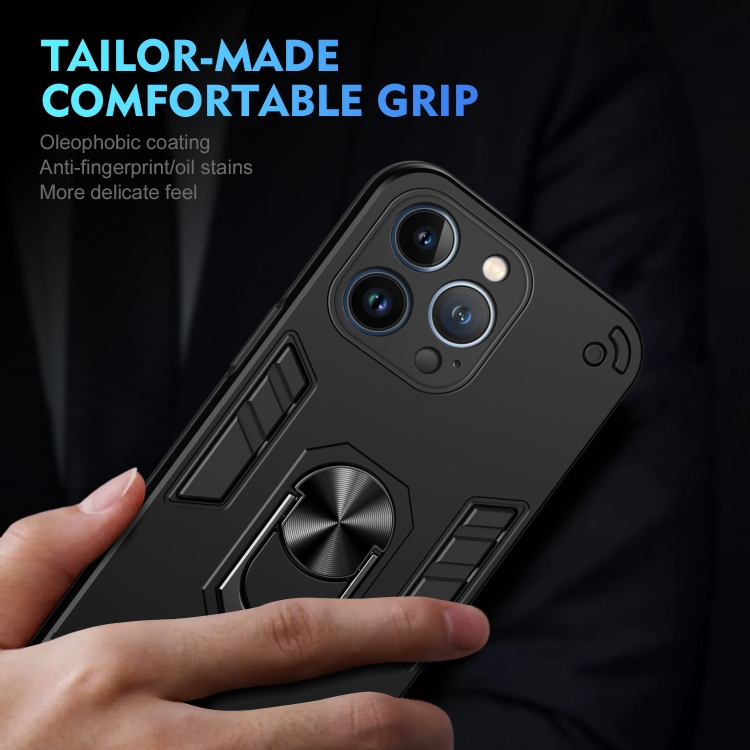 Funda para Teléfono iPhone 13 Pro Max con Soporte de Anillo de Metal a Prueba de Golpes (Negro)