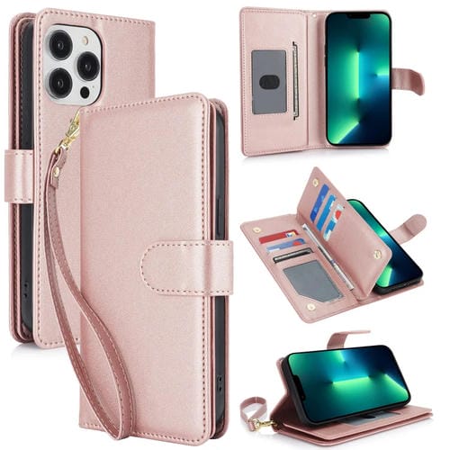 Funda para Teléfono iPhone 13 Pro Max Cuero Rfid con Billetera MultiTarjeta (Oro Rosa)