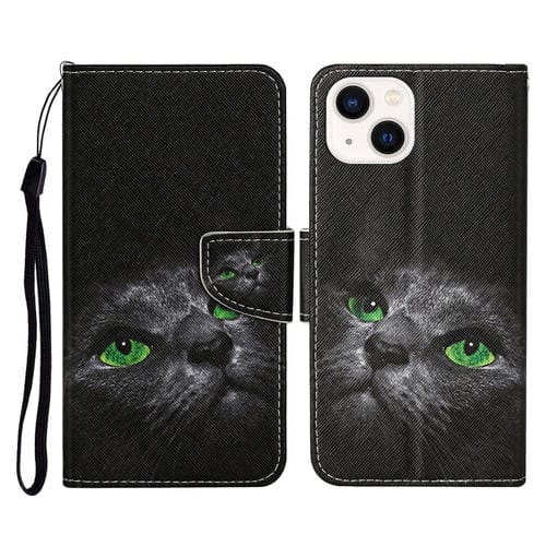 Estuche para Teléfono iPhone 14 con Tapa de Cuero y Dibujo 3D (Gato Negro)