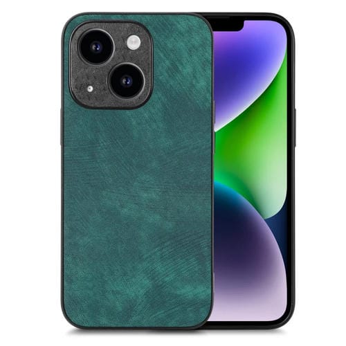Funda de Teléfono para iPhone 14 con Contraportada de PC de Cuero Vintage (Verde)