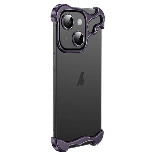 Funda para Teléfono iPhone 14 con Almohadilla de Esquina de Metal sin Marco y Película para Lentes (Púrpura)