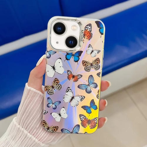 Funda para Teléfono iPhone 14 con Mariposa Láser Galvanizada (Ab1)