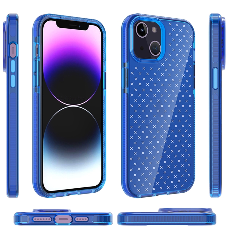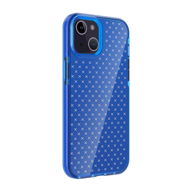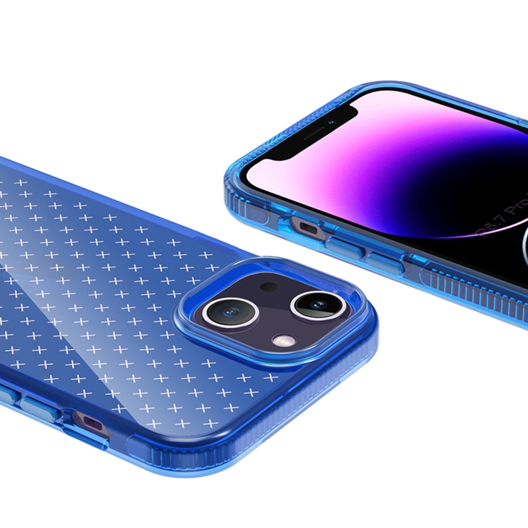 Funda de teléfono TPU para iPhone 14 patrón de cuadrícula (Azul)