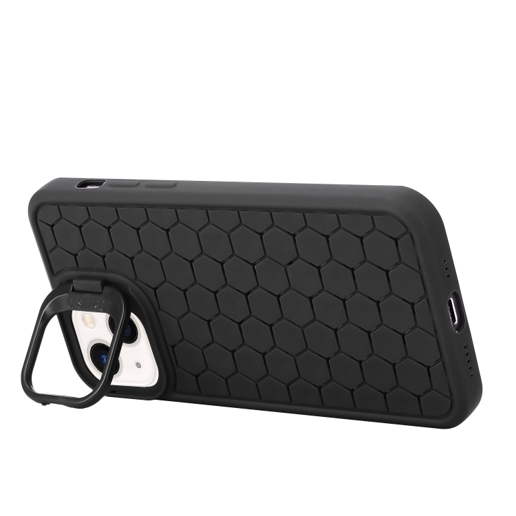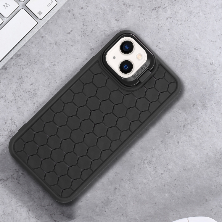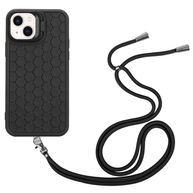 Funda para Teléfono TPU para iPhone 14 Plus con Soporte Radiante en Forma de Panal con Cordón (Negro)