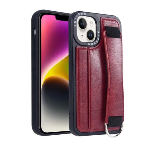 Funda para iPhone 14 Plus Marco de Fotos Tarjeta Monedero Correa Muñeca Contraportada (Rojo)