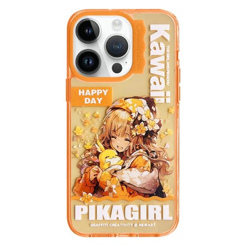 Pour iPhone 14 Pro Étui de téléphone à motif créatif de cercle de vague coloré (fille de fleur de papillon orange)