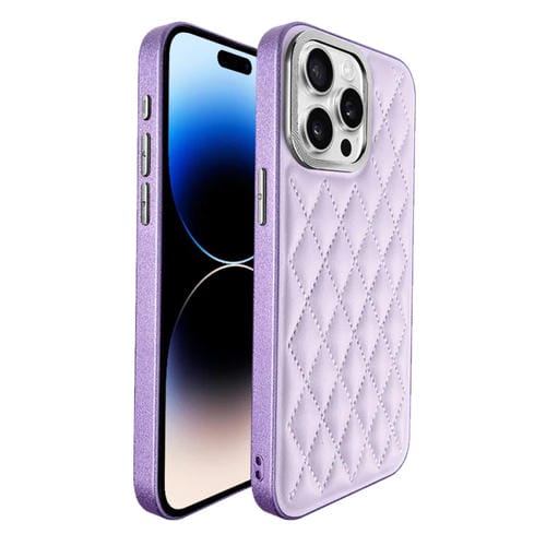 Estuche para teléfono iPhone 14 Pro Max Plaid Series 9D Galvanizado (Púrpura)