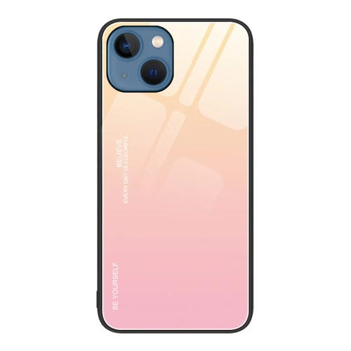 Pour iPhone 15 Étui de téléphone en verre de couleur dégradée (rose jaune)