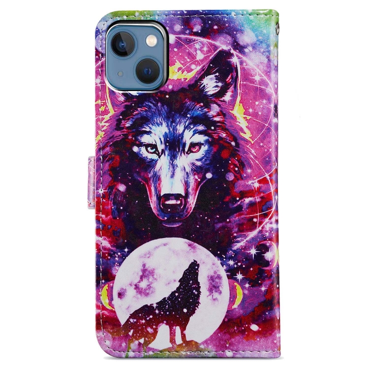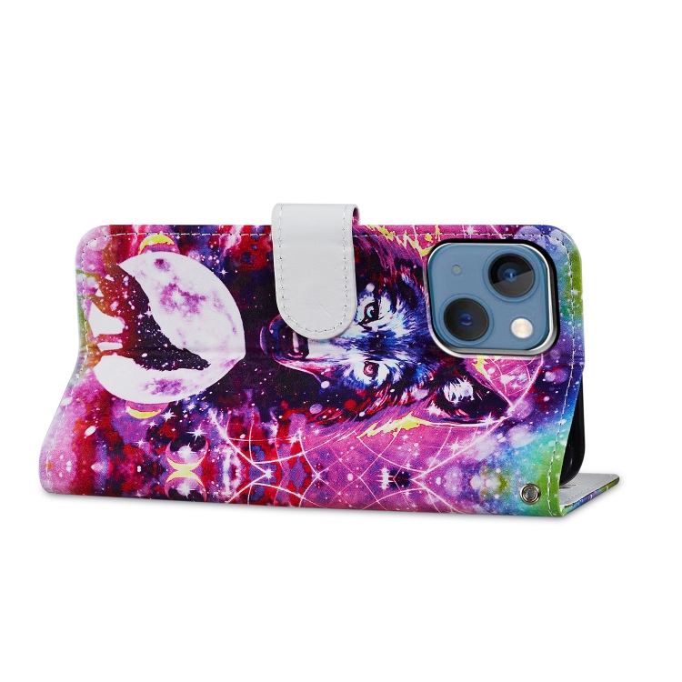 Estuche de Teléfono iPhone 15 Cuero Dibujo a Color Tótem de Lobo