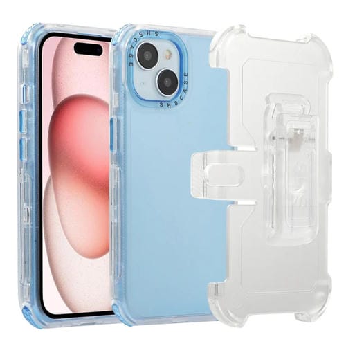 Pour iPhone 15 Étui de téléphone PC + TPU givré avec clip arrière (bleu ciel)