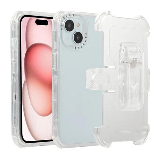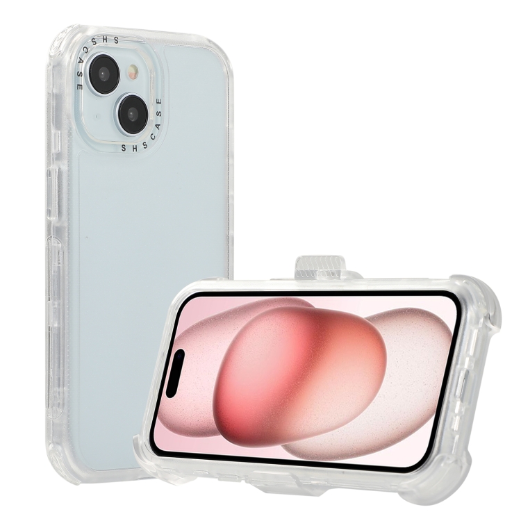 Estuche para Teléfono iPhone 15 Frosted PC + TPU con Clip Trasero (Blanco)
