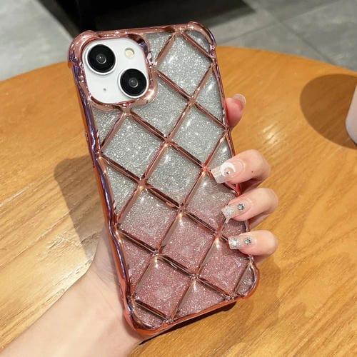 Funda para Teléfono iPhone 15 con Papel Brillante Grabado Láser Entramado de Diamantes 3D (Rosa Degradado)